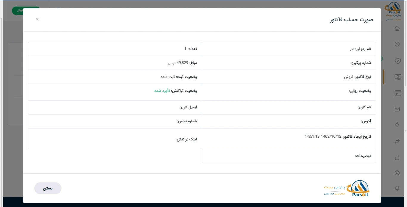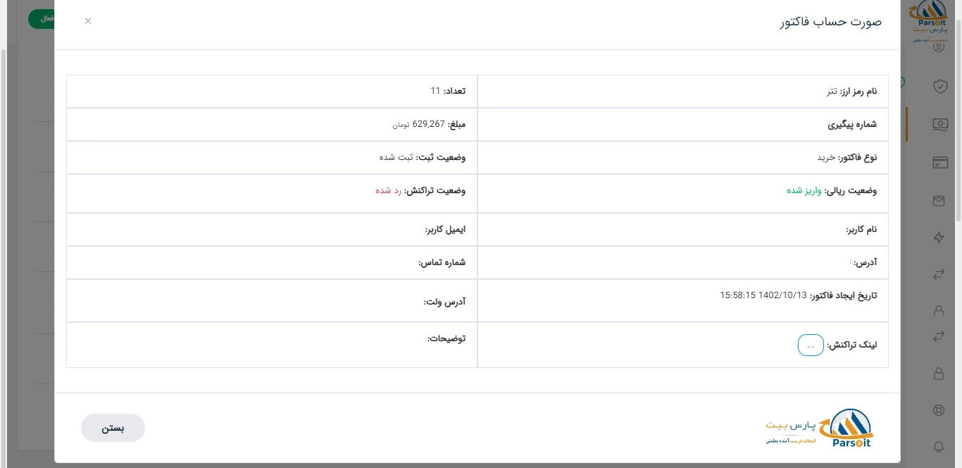 ✔ تاریخ ایجاد و زمان | ✔ وضعیت ریالی | ✔ وضعیت تراکنش |