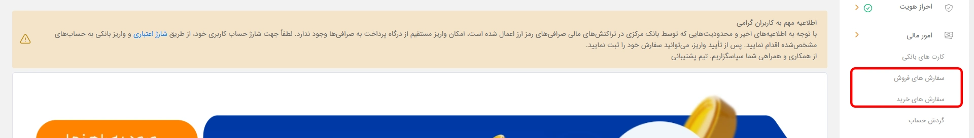 2- از میزکار خود گزینه (( سفارش های فروش و خرید)) را انتخاب نمایید.