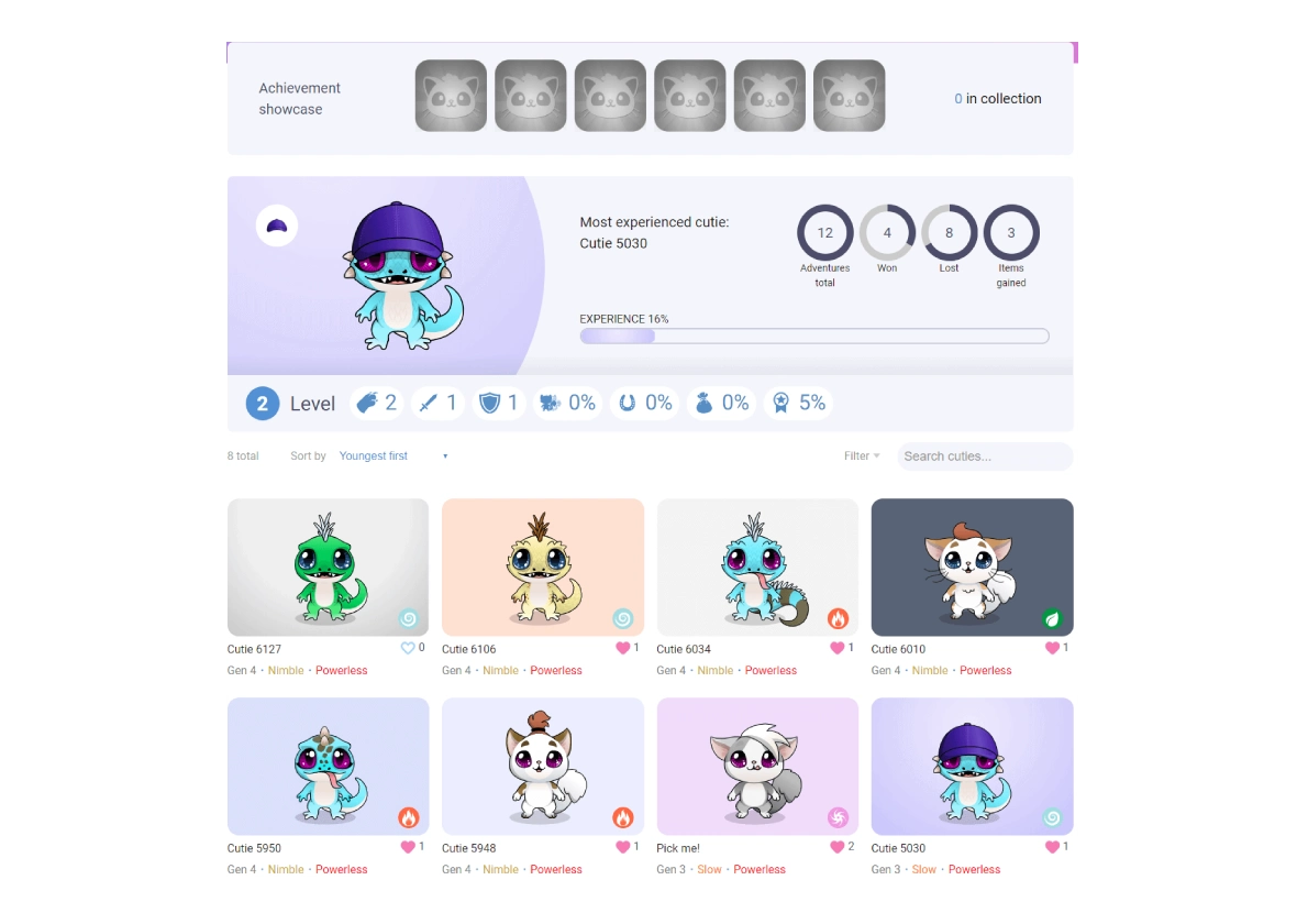 بازی Blockchain Cuties با ارائه یک مکانیک ساده و در عین حال جذاب توانسته تجربه کاربری مناسبی برای بازیکنان تازهکار و حرفهای ایجاد کند. بازیکن ابتدا با ایجاد کیف پول دیجیتال و اتصال آن به بازی وارد اکوسیستم میشود و پس از ثبتنام، میتواند اولین کیوتی خود را خریداری کند یا از طریق نسلبندی کیوتیها، موجودات جدید بسازد. هر کیوتی دارای ویژگیهای منحصربهفردی مانند نوع، نژاد، مهارتها و کمیابی است که بر تواناییهای نبرد و ارزش اقتصادی آن تأثیر میگذارد.