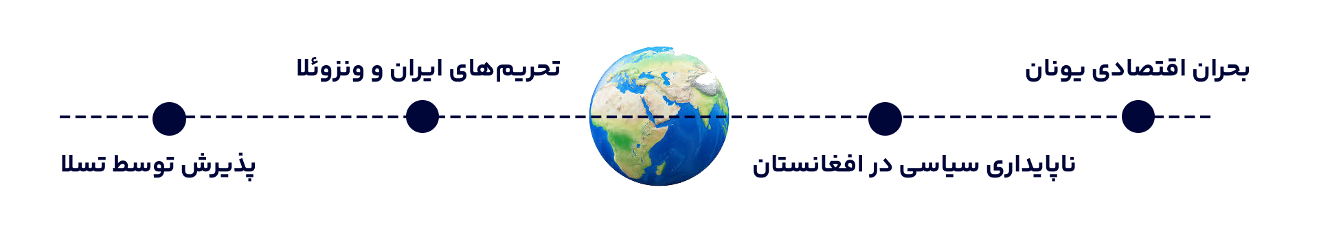 جدول زیر نمونههایی از تأثیر رویدادهای اقتصادی و سیاسی بر قیمت بیت کوین را نشان میدهد: