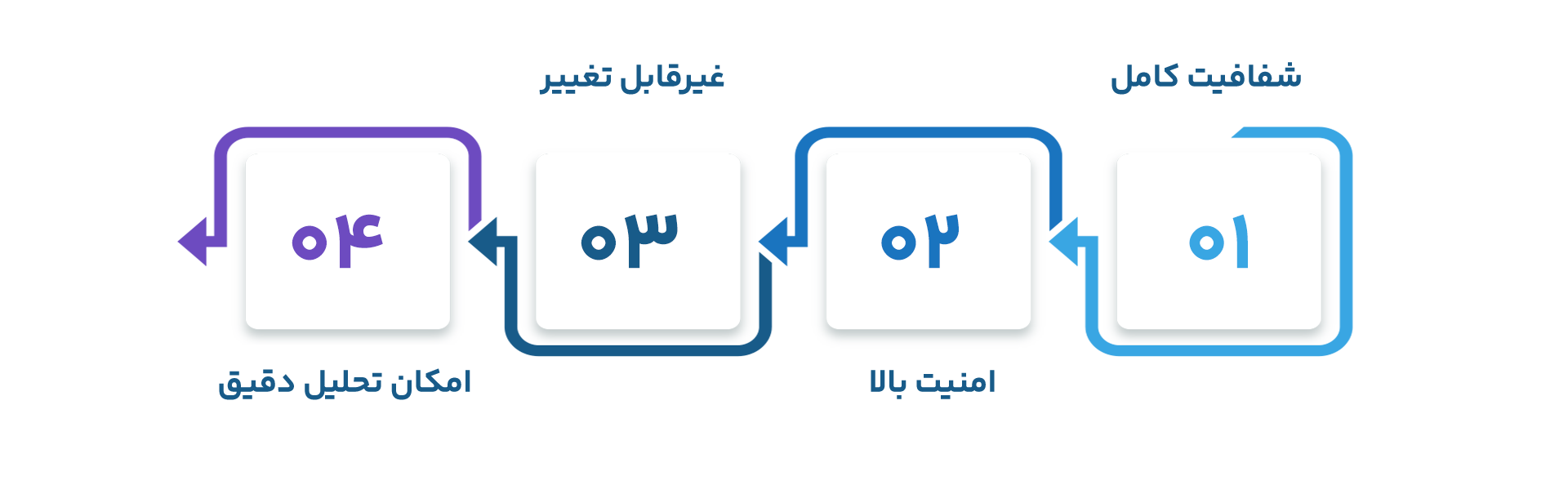 ثبت تراکنش → تأیید توسط شبکه → ثبت دائمی در بلاکچین → قابل ردیابی برای همه