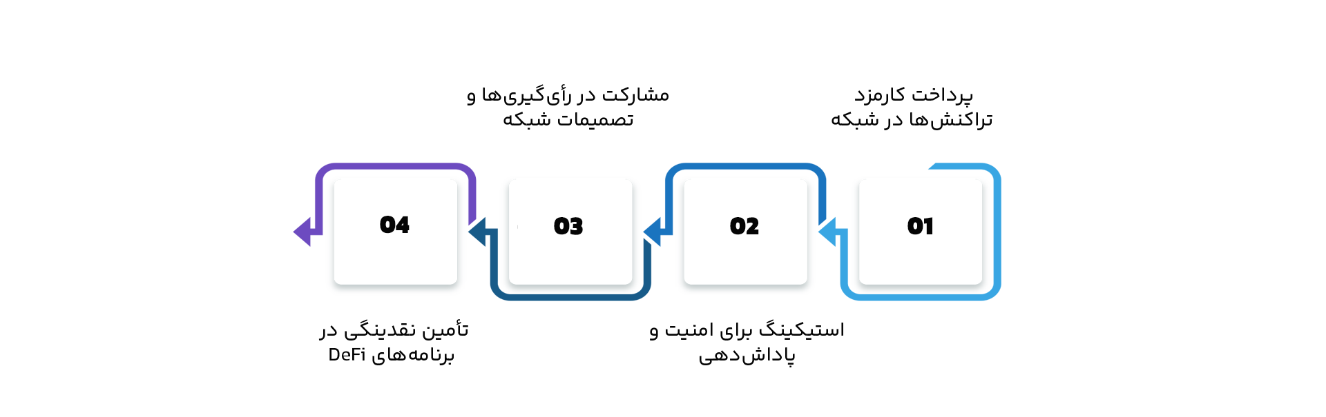 پاداش مشارکتکنندگان | بیتکوین + کارمزد تراکنش | کارمزد + پاداش استیکینگ |