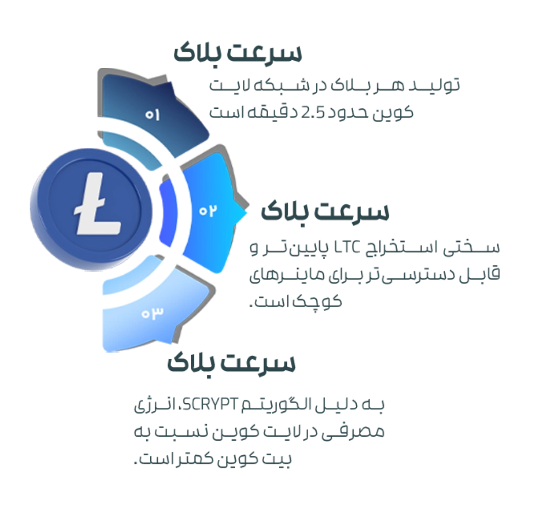 سرعت بلاک: تولید هر بلاک در شبکه لایت کوین حدود ۲.۵ دقیقه است، در حالی که بیت کوین ۱۰ دقیقه طول میکشد.