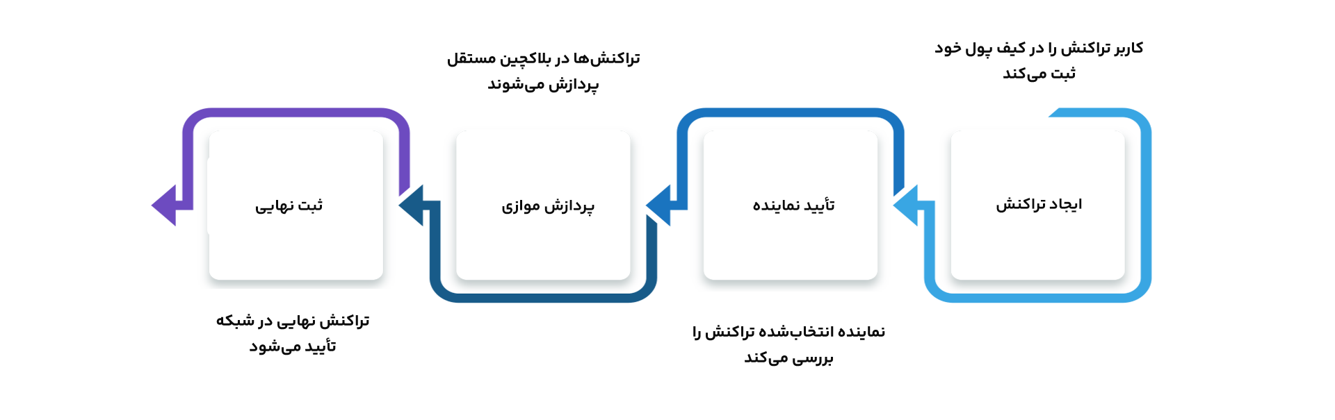 ایجاد تراکنش | کاربر تراکنش را در کیف پول خود ثبت میکند | ارسال اطلاعات تراکنش به شبکه |