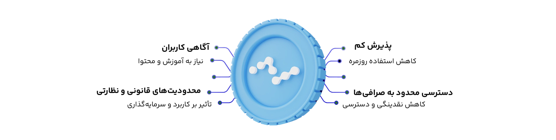 محدودیتهای قانونی و نظارتی | قوانین ناپایدار در کشورهای مختلف | تأثیر بر کاربرد و سرمایهگذاری |