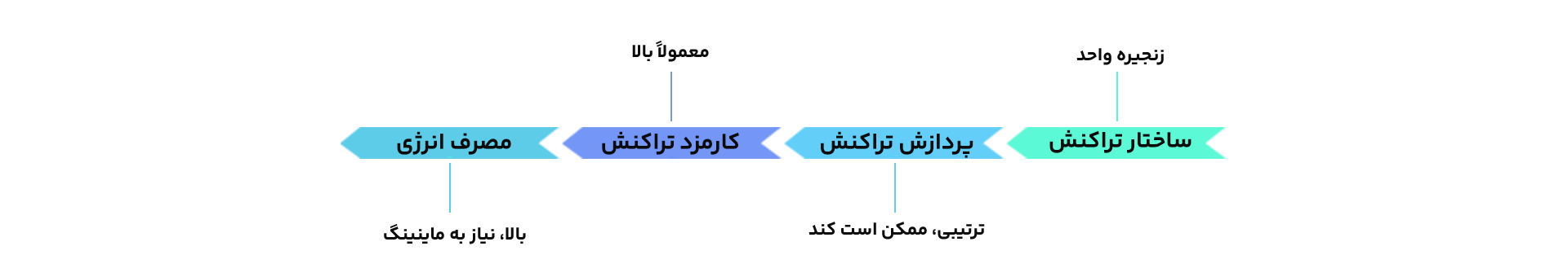 پردازش موازی | تراکنشها در بلاکچین مستقل پردازش میشوند | افزایش سرعت و مقیاسپذیری |