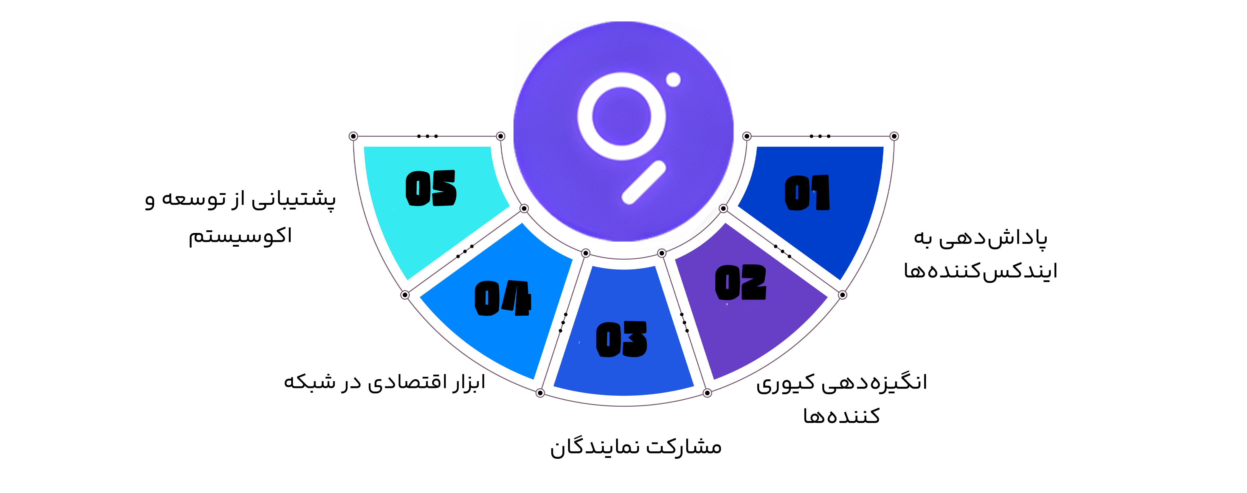 پاداشدهی به ایندکسکنندهها | توکن به عنوان پاداش انجام وظایف ایندکسینگ دادهها پرداخت میشود | حفظ دقت و کیفیت دادهها |